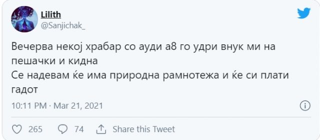 Некој храбар со Ауди А8 го удри внук ми на пешачки на Партизанска и кидна