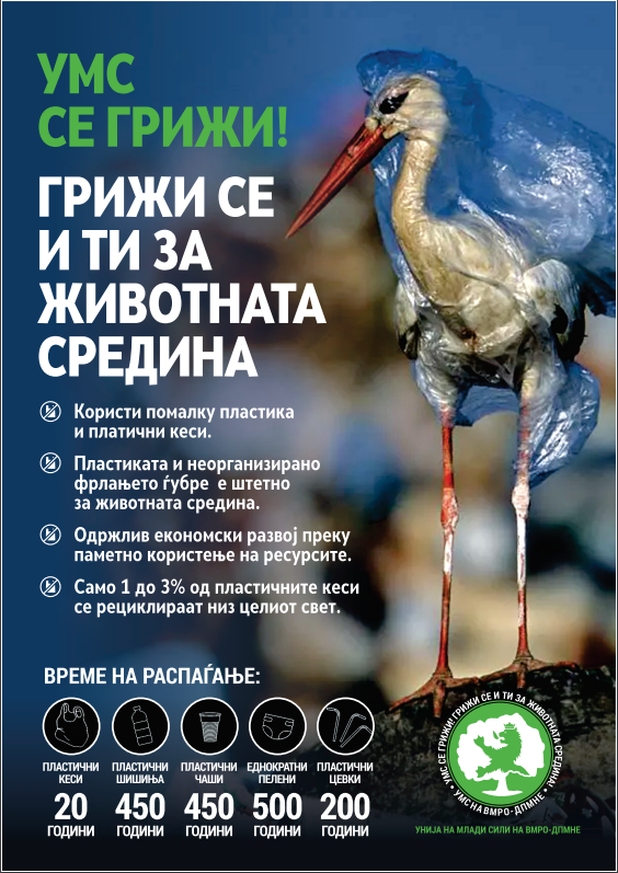 Пораката на УМС е помалку користење на пластични кеси и отпадоци кои тешко се разградуваат во природата со цел подигање на еко свеста како кај младите така и кај целокупното население.